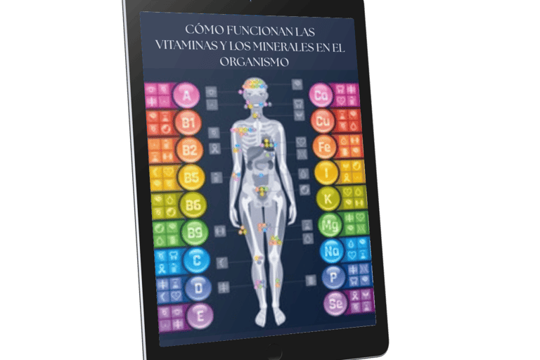 Lámina ilustrativa sobre cómo las vitaminas y minerales actúan en nuestro organismo